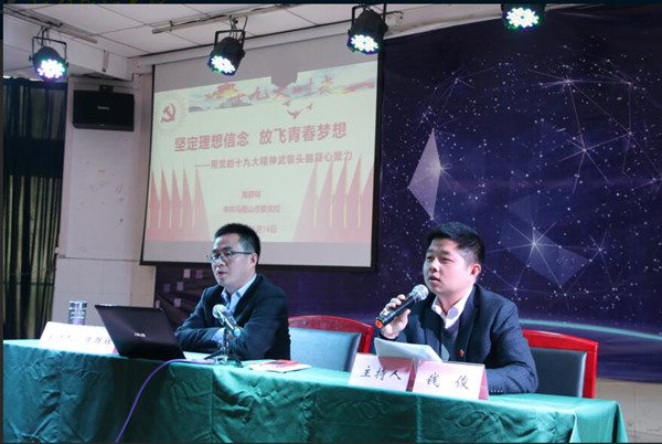 宣講報(bào)告結(jié)束后,團(tuán)市委書記錢俊就全市共青團(tuán)系統(tǒng)深入學(xué)習(xí)宣傳貫徹黨的十九大精神提出三點(diǎn)要求。一是要認(rèn)真學(xué)習(xí)。要原原本本學(xué)習(xí),堅(jiān)持讀原文、悟原理,做到學(xué)懂弄通;要全面覆蓋學(xué)習(xí),把十九大精神學(xué)習(xí)落實(shí)到每個(gè)團(tuán)支部,確保應(yīng)學(xué)盡學(xué);要多種形式學(xué)習(xí),通過舉辦座談?dòng)懻?、知識(shí)競(jìng)賽、網(wǎng)絡(luò)答題等形式,掀起學(xué)習(xí)熱潮;要堅(jiān)持團(tuán)干帶頭學(xué)習(xí),做到先學(xué)一步、學(xué)深一層;要聯(lián)系實(shí)際學(xué)習(xí),聯(lián)系本職工作,特別是聯(lián)系總書記關(guān)于青少年工作和共青團(tuán)改革方面論述學(xué)習(xí)。二是要深入宣講。組織青年宣講團(tuán)成員進(jìn)學(xué)校、進(jìn)社區(qū)、進(jìn)企業(yè),把十九大精神送到青年身邊;要運(yùn)用生動(dòng)的語言和貼近實(shí)際的例子,把十九大精神講清楚、講明白,讓青年聽得懂、能領(lǐng)會(huì)、可落實(shí)。三是要?jiǎng)?wù)實(shí)苦干。要找準(zhǔn)十九大精神與共青團(tuán)工作的結(jié)合點(diǎn),認(rèn)真總結(jié)、謀劃和部署工作;要把學(xué)習(xí)十九大精神貫穿到推進(jìn)改革攻堅(jiān)、從嚴(yán)治團(tuán)、青年志愿服務(wù)、青年創(chuàng)新創(chuàng)業(yè)各項(xiàng)重點(diǎn)任務(wù),真抓實(shí)干,確保落地見效;要勇于創(chuàng)新,注重吃透上情、了解外情、把握?qǐng)F(tuán)情,注重系統(tǒng)思考、整體構(gòu)思、深入研究,用新眼光看問題,用新角度想問題,用新思路解決問題。