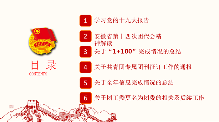 會(huì)議共分兩個(gè)階段,第一階段由全體團(tuán)干及團(tuán)員代表參加。在場(chǎng)青年學(xué)習(xí)了十九大報(bào)告綱要及省十四次團(tuán)代會(huì)會(huì)議精神,會(huì)上總結(jié)了“1+100”團(tuán)干部聯(lián)系青年落實(shí)情況、集團(tuán)全年信息完成情況及2018年度團(tuán)刊征訂三方面工作并做通報(bào)。