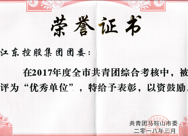 會上對全市共青團2017年度綜合考核優(yōu)秀單位頒獎,集團團委榮獲優(yōu)秀表彰。