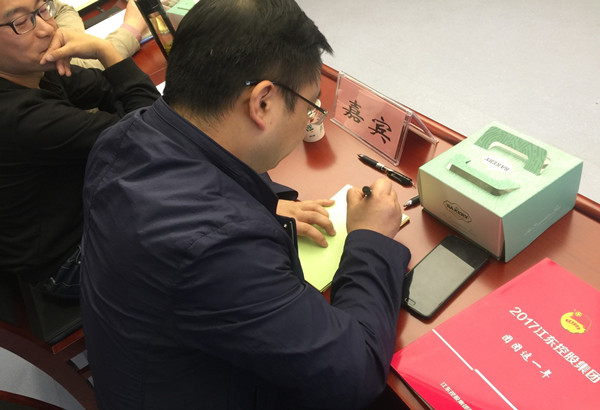 集團(tuán)董事長、黨委書記、總經(jīng)理張道祥作為“神秘大咖”在活動中途快速步入會場在團(tuán)員青年中間坐了下來,短暫的錯愕后現(xiàn)場響起熱烈而激動的掌聲。他首先聽取了本次活動的主題匯報并對活動的意義給予肯定,接著同團(tuán)員青年代表分享了自己從事共青團(tuán)工作的經(jīng)歷,看到大家都對集團(tuán)的往昔和未來都寫下了胸中所想,他熱情寫下:
